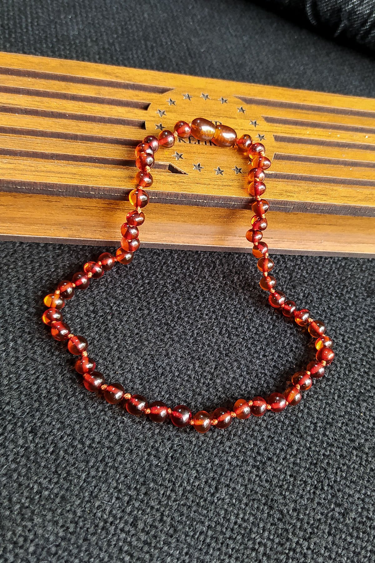 Sertifikalı Konyak Rengi Kehribar Kolye Kız Erkek Bebek Diş Kolyesi 4-7 Yaş 35 cm Çocuk Kolyesi
